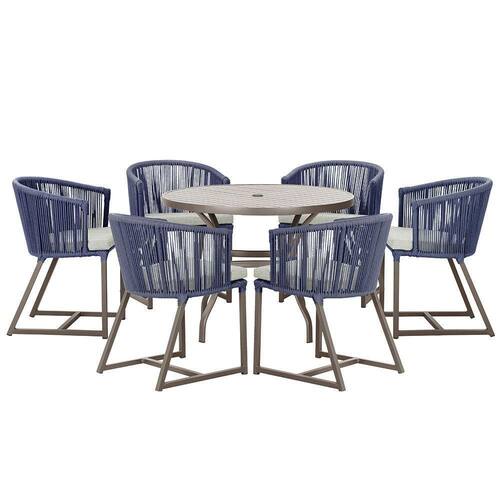 Combinando estilo e resistencia, esta Mesa e cadeiras traz o melhor do design contemporaneo em aluminio com micro pintura e acabamento em corda nautica. O Estofado impermeavel completa o conforto e a funcionalidade, tornando-a ideal para ambientes externos e internos.