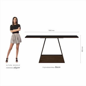 Detalhes Técnicos da Mesa - Pintura UV - Quantidade de Lugares: 06 - Estrutura: MDP de 15mm - Tampo: MDP de 25mm - Tonalidade Mesa: Imbuia/Preto - Medida Montada: A:80cm | L:160cm | P:80cm