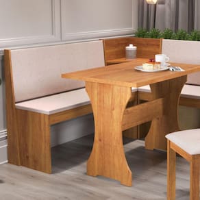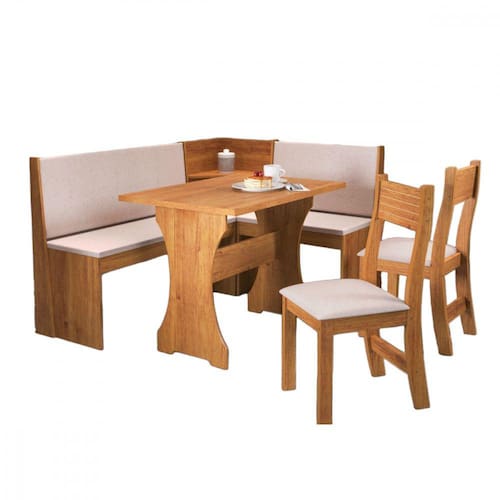Dimensões da mesa e bancos: Medida da mesa: Altura: 80 cm | Largura: 111 | Comprimento: 75 cm Medida do canto maior: Altura: 89 cm | Largura: 158 cm | Profundidade: 46 cm Medida do canto menor: Altura: 89 cm | Largura: 118 cm | Profundidade: 46 cm
