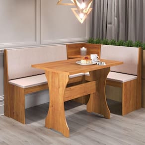 Dimensões: Medida da mesa: Altura: 80 cm | Largura: 111 | Comprimento: 75 cm Medida do canto maior: Altura: 89 cm | Largura: 158 cm | Profundidade: 46 cm Medida do canto menor: Altura: 89 cm | Largura: 118 cm | Profundidade: 46 cm