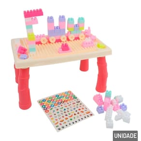 Mesa com Blocos de Montar 80 Peças Mega Inbl A Mesa com Blocos de Montar 80 Peças Mega Inblox é a escolha ideal para crianças que adoram criar e construir! Com 80 peças coloridas, esse conjunto permite que os pequenos soltem a imaginação e construam diversos modelos, desde formas simples até construções mais complexas.\nA mesa oferece um espaço prático e organizado para as brincadeiras, mantendo as peças ao alcance das mãos e facilitando o processo de montagem. As peças são de fácil encaixe, garantindo diversão e aprendizado ao mesmo tempo. Ideal para desenvolver habilidades motoras, criatividade e raciocínio lógico, essa mesa com blocos de montar é perfeita para momentos de diversão e estímulo à exploração!\nContém: 80 Peças.\nEspecificações:\nMarca : ARK BRASIL\nTipo de material : Plástico\nCores ou Estampa : Colorido\nDimensões do Produto : 24 X 40 X 7 CM\nDimensões da Embalagem : 24 X 40 X 7 CM\nPeso Bruto (Gramas) : 0.607
