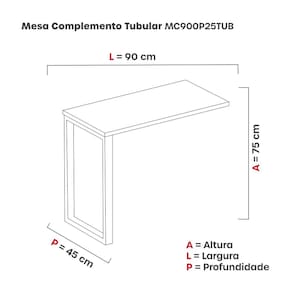 Mesa Complemento 900x450mm Mcp90/45p25tub Grafito/Branco - Cinza