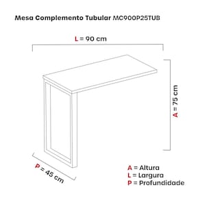 Mesa Complemento 900x450mm Mcp90/45p25tub Grafito/Preto