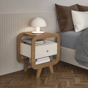 Mesa de Apoio 1 Gaveta com USB Théo Artely - Branco | Bege | Marrom