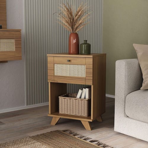 Mesa de Apoio Cabeceira Lateral Trama Carvalho / Palha -