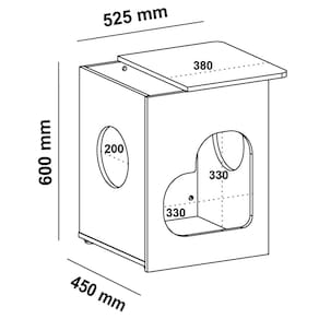 Características adicionais: Pode ser usada como mesa de apoio e/ou casinha para pets. O tampo pode ser montado para esquerda ou direita. Espaço para armazenamento embaixo do tampo. Recorte em forma de coração.