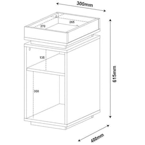 Características Gerais do Produto: - Acabamento: UV Texturizada - Acompanha Manual: sim - Altura (cm): 62cm - Comprimento (cm): 30cm - Material do Pé: Sapata Plastica - Material do Tampo: MDP 15mm - Peso do(s) Produto(s): 11,4 kg - Profundidade (cm): 40cm - Tipo de Madeira: MDP - Material Prateleiras: MDP 15mm - Quantidade De Prateleiras: 1 - Quantidade De Nichos: 2 - Peso (Kg): 11,4 kg - Matéria-prima: MDP - Garantia: 3 meses