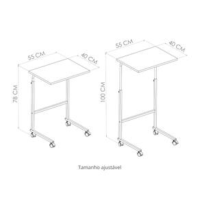 A Mesa de Aproximação SW011 é perfeita para aquelas situações onde você precisa apoiar suas coisas sem precisar se locomover. Ideal para deixar ao lado do sofá e da cama, funciona tanto como mesa de alimento quanto para trabalho no computador. Possui regulagem de altura e rodízios, estrutura em tubo metálico e reforço para garantir estabilidade do móvel. CARACTERÍSTICAS TÉCNICAS: - Produzida em Metal e Madeira; - Estrutura Metálica e prateleiras de madeira; - Acabamento na Cor Preto/Noce Oro; - Possui regulagem de altura; - Rodízios para facilitar a movimentação. DIMENSÕES: Altura: 78 cm; Largura: 55 cm; Profundidade: 40 cm; Peso: 20 Kg. INFORMAÇÕES ADICIONAIS: ATENÇÃO: Não trabalhamos e não nos responsabilizamos pela montagem do móvel. Antes da montagem, conferir se o produto está de acordo com o que comprou. Produto montado e danificado pela montagem não será aceito para troca. Montagem e instalação por conta do comprador. As imagens ambientadas são meramente ilustrativas e podem apresentar itens que não compõem o produto. As cores do produto podem variar de acordo com o monitor, a iluminação do ambiente ou sua percepção visual. Limpeza: Deve ser feita com pano macio e seco ou levemente umedecido com água e sabão neutro. Não devem ser utilizados abrasivos como palha de aço e objetos cortantes. Garantia para defeitos de fabricação conforme Código de Defesa do Consumidor.