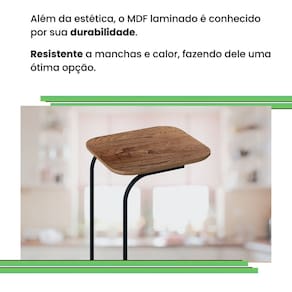 A mesinha de encosto de sofá possui um tampo confeccionado em MDF, que adiciona um toque de elegância e originalidade ao ambiente. Sua estrutura em aço confere robustez e estabilidade, garantindo durabilidade e suporte seguro. Perfeita para apoiar livros, bebidas ou itens decorativos, esta mesinha é ideal para complementar salas de estar, oferecendo funcionalidade sem comprometer o estilo. Ambiente Principal: Sala de Estar Complexidade da Montagem: Baixa: pode ser montado por uma pessoa sozinha Cor: Preto/Cinamomo Cor do Produto: Preto/Cinamomo Escala de Brilho: Semi-Fosco Itens Inclusos: 1 Mesinha, Manual de montagem e Kit ferragem Linha ou Coleção: Roma Manual de Montagem e Instalação: https://product-hub-prd.madeiramadeira.com.br/956347/documents/21c9937c-883e-4f1a-af4b-fea090bac9242418877493817279659236418.pdf Material do Tampo: Vidro/MDF Material Principal: Aço Necessita Montagem: Sim Peso: 3,5 kg Possui Espelho: Não Possui Possui Gavetas: Não Possui Portas: Não Possui Prateleiras: Não Recomendações de Uso, Manutenção e Limpeza: Limpeza com pano macio e levemente umedecido. Não utilizar solventes a base e de inflamáveis. Não utilizar produtos abrasivos. Sistema de Montagem: Parafusos Suporta Até (kg): 5 kg Marca: PAONANDA DECOR