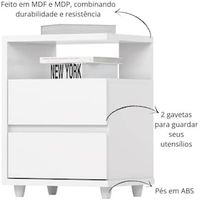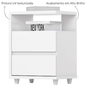 Com duas gavetas espaçosas, oferece praticidade para armazenar objetos pessoais, mantendo seu ambiente sempre organizado. Seus pés em ABS garantem estabilidade e facilitam a limpeza do espaço.