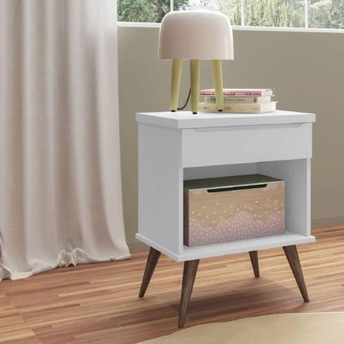 Montando o quartinho do bebê? A mesa de apoio Melinda é perfeita para compor qualquer ambiente, deixando a decoração do quarto ainda mais aconchegante ou até mesmo servir de apoio para colocar o que for mais utilizado na hora de cuidar do seu neném, pois possui nicho e gaveta para organizar objetos e pertences! Acabamento da Gaveta: Pintura UV Ambiente Principal: Quarto Infantil Complexidade da Montagem: Média: pode ser montado por mais de uma pessoa e/ou necessite de maior conhecimento para montagem Cor: Branco Cor do Produto: Branco Cor Interna: Branco Escala de Brilho: Brilhante Escala de Brilho da Gaveta: Brilhante Gaveta com Chave: Não Itens Inclusos: 1 Mesa de Cabeceira, Kit Ferragens e Manual de Montagem Manual de Especificação Técnica: https://cdn2.madeiramadeira.com.br/atributo/phoenix-baby/1243421-mesa-de-apoio-melinda-pdf.pdf Manual de Montagem e Instalação: https://cdn2.madeiramadeira.com.br/atributo/phoenix-baby/1243422-mesa-de-apoio-melinda-pdf.pdf Material da Gaveta: MDF Material dos Pés: Eucalipto Material Principal: MDF Necessita Montagem: Sim Origem do Produto: Nacional Pés Reguláveis: Não Peso: 8.85 Peso Máximo por Gaveta: 5 Pet Friendly: Não Possui Espelho: Não Possui Nichos: Não Possui Pés: 04 Possui Portas: Não Possui Prateleiras: Não Possui Rodízio: Não Possui Vidro: Não Recomendações de Uso, Manutenção e Limpeza: Utilizar pano seco Sapatas Niveladoras: Não Sistema de Montagem: Parafusos Suporta Até (kg): 8 Tipo de Corrediça da Gaveta: Metálica Telescópica Tipo de Puxador da Gaveta: Embutido
