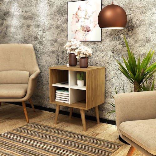Mesa de Apoio Lateral 4 Nichos E1720 Tecno Mobili Marroml/Off White - Bege