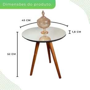 Essa mesa lateral une funcionalidade e sofisticação com seu tampo em MDF revestido com espelho, que adiciona brilho e modernidade ao design. Os pés em eucalipto, com acabamento natural, proporcionam um toque orgânico e acolhedor. Compacta e versátil, é perfeita para complementar diferentes ambientes, servindo como apoio para objetos decorativos ou itens do dia a dia. Uma peça que combina durabilidade e elegância de forma harmoniosa. Acabamento do Tampo: Laca Altura do Espelho: 45 cm Ambiente Principal: Sala de Estar Complexidade da Montagem: Baixa: pode ser montado por uma pessoa sozinha Cor: Preto / Mel Cor do Produto: Preto / Mel Escala de Brilho: Fosco Espessura do Espelho: 3 mm Espessura do Tampo: 15 mm Extensível: Não Formato do Espelho: Redondo Itens Inclusos: 1 Mesa de canto lateral e 1 Kit com 3 pés palitos de Eucalipto. Largura do Espelho: 45 cm Linha ou Coleção: Esmeralda Manual de Montagem e Instalação: https://product-hub-prd.madeiramadeira.com.br/971579/documents/8cf1f296-b197-4c89-bfe1-2b9f4e1c60a2montagemmesalateralathenas.pdf Marca: Sparta Móveis Material do Tampo: MDF Material Principal: MDF Medida do Tampo (L x C x E): 45cmx45cmx1,5cm Necessita Montagem: Sim Origem do Produto: Nacional Peso: 5,5 kg Possui Base: Não Possui Espelho: 01 Possui Gavetas: Não Possui Portas: Não Possui Prateleiras: Não Possui Suporte Giratório: Não Recomendações de Uso, Manutenção e Limpeza: Limpar com pano seco e limpo Sistema de Montagem: Não é necessário nenhum material para a montagem. Basta enroscar os pés no tampo. Suporta Até (kg): 15 kg Tipo de Fixação do Espelho: Silicone Marca: Sparta Móveis