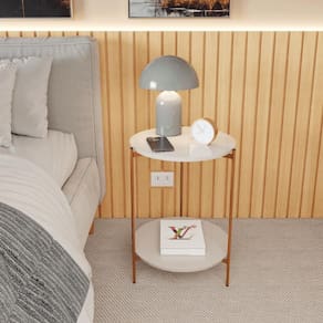 A Mesa de Apoio Lateral Duda Off White com Pés de Ferro Bronze é a escolha ideal para quem busca praticidade e sofisticação. Seu design clean e seus pés de ferro bronze adicionam um toque moderno ao ambiente. Perfeita para apoiar livros, revistas ou uma luminária, ela se encaixa perfeitamente em qualquer espaço da sua casa.