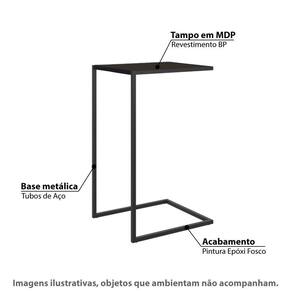 Características - Preto - Base Metálica: Tubos de Aço 15x15mm - Acabamento: Pintura Epóxi Fosco - Tampo: MDP 15mm - Revestimento: BP - Peso Suportado: Até 5kg - Produto entregue desmontado - Marca: Artesano