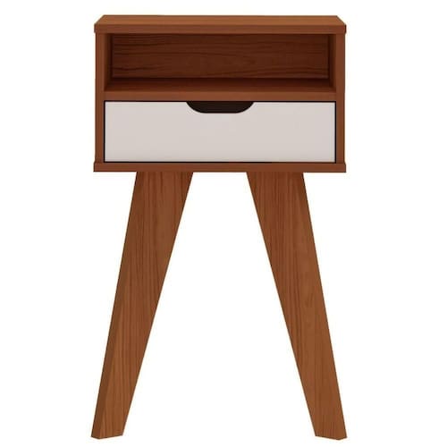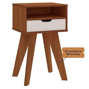 Mesa De Apoio Lateral Vip Com Gaveta E Nicho Cedro / Off White Mesa de Apoio Lateral Vip Com Gaveta e Nicho Cedro / Off White - A Mesa de Apoio Vip traz um toque de modernidade ao seu espaço. Com pés robustos em MDF de 25mm e corpo em MDF/MDP de 15mm, promete durabilidade. A gaveta, equipada com corrediças metálicas, é ideal para guardar pequenos itens, facilitando a organização. Sua pintura UV texturizada realça a estética e simplifica a manutenção.