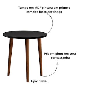 Mesa de Apoio mesa Lateral Decorativa Baixa Compacta Preta Praticidade e estilo com a Mesa de Apoio Baixa 40 cm - Perfeita para complementar sua decoração Transforme seu espaço com esta mesa de apoio decorativa, projetada para ser prática e elegante. Com altura de 40 cm, é ideal para acompanhar sofás, poltronas ou como peça decorativa em qualquer ambiente. Design moderno: Compacta e minimalista, adapta-se a diversos estilos de decoração. Versatilidade incrível: Ideal para sala, quarto, escritório ou até como mesa de canto. Material resistente: Feita com materiais de alta qualidade para garantir durabilidade. Fácil de combinar: Sua estética discreta e funcional valoriza ambientes de qualquer tamanho. Praticidade no dia a dia: Perfeita para apoiar livros, objetos decorativos ou uma xícara de café. Leve sofisticação e funcionalidade para sua casa com esta mesa de apoio decorativa. Um item indispensável para quem valoriza bom gosto e organização Características: Material: Tampo em MDF pintura em prime e esmalte fosco acetinado. Pés em pinus em cera cor castanha. Medidas: Diâmetro 40 cm. Altura montada 40 cm. Peso Aproximado: 2,9 kg. Especificações técnicas: Tipo: Baixa. Marca: Casa. Avisos: Imagem meramente ilustrativa. : Contra defeitos de fabricação. Informações sujeitas a alterações sem aviso prévio. Marca: Não Informado Ean: 7906443381061