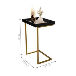 ALTURA DO PRODUTO (CM): 75 | LARGURA DO PRODUTO (CM): 42 | COMPRIMENTO DO PRODUTO (CM): 29 | MATERIAL PRINCIPAL: MDP | COR PREDOMINANTE: Preto | FORMATO: Retangular | MARCA: JB BECHARA | CORES DO PRODUTO (FILTRO DE CORES): Preto | DESCRIÇÃO DO TAMANHO: Altura: 75 cm x Largura: 42 cm x Comprimento: 29 cm | ALTURA DO PRODUTO COM EMBALAGEM (CM): 5 | LARGURA PRODUTO COM EMBALAGEM (CM): 74 | COMPRIMENTO PRODUTO COM EMBALAGEM (CM): 36,5 | PESO PRODUTO COM EMBALAGEM (KG): 4 | PESO DO PRODUTO (KG): 3,6 | MATERIAL PARA FILTRO: MDP | NOME DO PRODUTO NO FORNECEDOR: MESA DE APOIO SOFA JB 4774 LUXO PRETO PE: DOURADO (27905) | ESTADO DE ORIGEM: SP | CONTEÚDO DA EMBALAGEM: 1 Mesa de Apoio | INSTRUÇÕES/CUIDADOS: Limpar com pano macio e seco, não utilizar produtos abrasivos. | PRODUTO PRECISA DE MONTAGEM?: Sim, a montagem é simples mas sugerimos a contratação do nosso de montagem (para os CEPs em que o está disponível) ou de algum experiente de sua preferência | MODELO: Mesa de Apoio Reggio Preto Pe Dourado