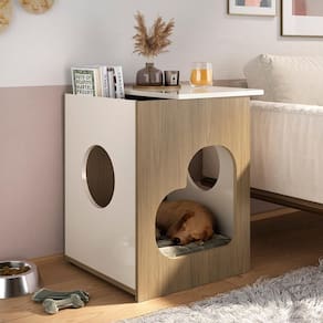 Para tornar os cômodos da sua casa mais completos e funcionais para você e seu pet, a Mesa Pet é uma excelente escolha! Versátil, ela pode ser usada na sala de estar, ao lado do sofá ou do rack, como mesa de cabeceira no dormitório ou até mesmo ao lado de uma poltrona no escritório. Sua superfície é ideal para apoiar livros, luminárias e vasos de flores, enquanto o espaço interno acolhedor, onde pode ser colocada uma caminha ou almofada, tornando um cantinho confortável para o seu animal de estimação. Fabricada em MDF/MDP, possui acabamento fosco e tampo em MDF, suportando até 5 kg.