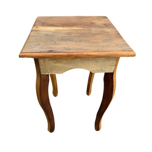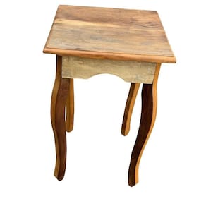 Transforme seu ambiente com charme e personalidade usando esta linda mesa de apoio rústica feita em madeira maciça. Com um design delicado e artesanal, ela combina traços clássicos com acabamento natural, destacando os veios da madeira e as curvas suaves dos pés.