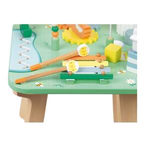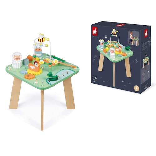 Parta para o campo e seus campos de lindas flores silvestres com esta mesa de atividades multiuso, apresentando todos os animais de fazenda favoritos do bebê! Então, vamos lá e ajude seu filho a descobrir as 7 atividades nesta versátil mesa de atividades, incluindo: 2 animais que podem ser empilhados de 2 maneiras diferentes para desenvolver habilidades motoras; um labirinto com um pato andando ao redor de seu lago, projetado para fortalecer a coordenação mão/olho; uma montagem de engrenagens que o bebê pode girar para aprender sobre causa e efeito; 3 cubos embutidos para aprender sobre formas; um ábaco para desenvolver a concentração e um xilofone de metal com 2 baquetas para desenvolver os talentos musicais do bebê! Altura da mesa: 32 cm.