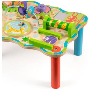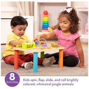 Esta mesa de atividades é ideal para crianças a partir de 12 meses, oferecendo oito atividades práticas que ajudam no desenvolvimento de habilidades importantes, como coordenação olho mão e motoras finas. A construção robusta em madeira garante estabilidade, segurança e longevidade. Com um design extravagante com tema de selva, a mesa apresenta cores brilhantes e padrões ousados. As peças anexadas são projetadas para girar, rolar, virar, girar, deslizar e muito mais, mantendo as crianças envolvidas e entretidas. Este é um ótimo presente para crianças a partir de 12 meses. Adicionando as escadas Melissa Doug First Play Pound Roll, a experiência prática de brincar pode ser ainda mais enriquecedora. A Melissa Doug tem sido líder na criação de produtos lindamente projetados para imaginação e criatividade por mais de 30 anos, sendo considerada o padrão ouro em brincadeiras infantis pela NBC News.