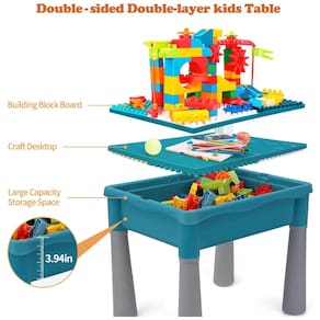 Mesa de Blocos com Armazenamento Integrado: Esta mesa possui uma camada de armazenamento integrada, tornando conveniente guardar os blocos e economizando espaço. Além disso, incentiva as crianças a desenvolverem hábitos de organização independentes desde cedo.