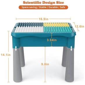 Design Especial para Crianças: Feito de plástico seguro, durável e de alta qualidade, este conjunto de mesa possui cantos arredondados com design anti-colisão e bordas lisas para evitar choques e arranhões acidentais. Os blocos de construção se encaixam firmemente, são fáceis de montar e desmontar, e não caem facilmente. As pernas da mesa possuem um design cilíndrico trapezoidal e são equipadas com adesivos antiderrapantes para maior estabilidade. As dimensões desta mesa de bloco infantil são 43cm x 32cm x 36cm (comprimento x largura x altura)