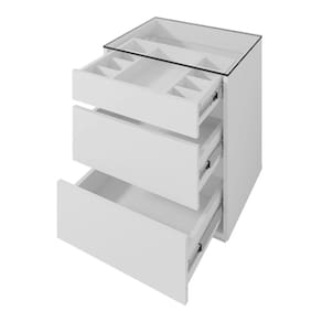 Características: Estrutura em MDF/MDP Pintura com acabamento Print Wood Atóxico Bordas com acabamento Soft PU 03 Gavetas com corrediças telescópicas sendo 01 com organizador interno para joias Tampo de vidro Pés em rodapé