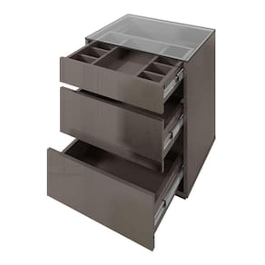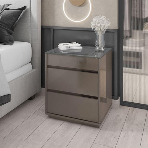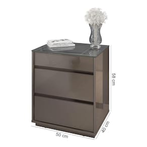 Características: Estrutura em MDF/MDP Pintura com acabamento Print Wood Atóxico Bordas com acabamento Soft PU 03 Gavetas com corrediças telescópicas sendo 01 com organizador interno para joias Tampo de vidro Pés em rodapé