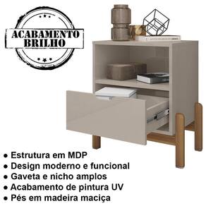 Mesa de Cabeceira 1 Gaveta 004015, é o móvel ideal para se ter ao lado da cama, pois ele armazena seus itens com muita comodidade e requinte. Possui amplo espaço e estilo, sem mencionar a qualidade, é um móvel fabricado com os melhores materiais do mercado. Estrutura elaborada em MDP de 25mm e 15mm, gaveta com corrediças telescópicas, o que garante mais praticidade e eficiência no dia-a-dia. Possui também nicho para a disposição de seus objetos mais utilizados. Suas gavetas não necessitam de puxadores, devido ao seu design. Sua pintura conta com acabamento Print Wood, patenteado e exclusivo Casa D, atóxico e anti mofo. Suporta até 20 kg distribuídos, seus pés são elaborados em madeira maciça, garantindo qualidade e segurança. Com sua versatilidade e estilo, ele irá acrescentar mais personalidade ao seu quarto. Este móvel chegará na sua casa separado em 01 volume.