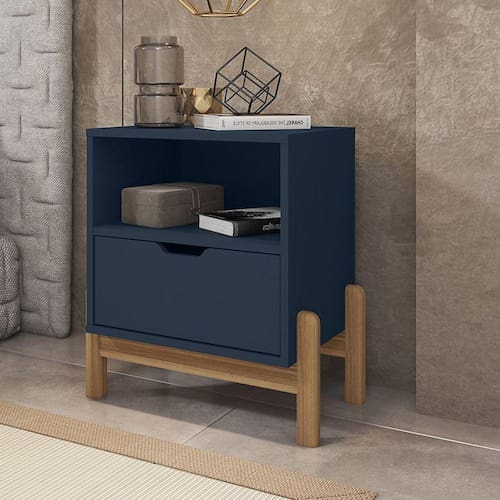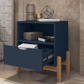 Mesa de Cabeceira Antares é ideal para deixar seu ambiente aconchegante e estiloso, com um design moderno e muito funcional, contém uma gaveta e um nicho com muito espaço para guardar seus pertences. Mesa de cabeceira com pés de madeira maciça, tornando-o ainda mais resistente. Acabamento de pintura UV. Frente de gaveta usinada. Acabamento da Gaveta: Pintura UV Acabamento dos Pés: Verniz Altura dos Pés: 25 Ambiente Principal: Quarto Complexidade da Montagem: Baixa: pode ser montado por uma pessoa sozinha Cor: Azul Cobalto Cor do Produto: Azul Cobalto Escala de Brilho: Semi-Fosco Escala de Brilho da Gaveta: Semi-Fosco Gaveta com Chave: Não Itens Inclusos: 1 Mesa de Cabeceira, Kit Ferragens e Manual de Montagem Linha ou Coleção: Antares Manual de Montagem e Instalação: https://product-hub-prd.madeiramadeira.com.br/812704/documents/bc8bf13c-f7b1-4b6e-bde0-0717db1d72a8ecabeceiraantares000000000.pdf Material da Gaveta: MDF/MDP Material dos Pés: Madeira Maciça Material Principal: MDF/MDP Necessita Montagem: Sim Origem do Produto: Nacional Pés Reguláveis: Não Peso: 12.3 Peso Máximo por Gaveta: 5 Pet Friendly: Não Possui Espelho: Não Possui Possui Nichos: 01 Possui Pés: 04 Possui Portas: Não Possui Prateleiras: Não Possui Vidro: Não Quantidade de Nichos: 01 Recomendações de Uso, Manutenção e Limpeza: Recomenda-se limpar o produto com flanela ou pano macio seco, não utilizar produtos abrasivos, desengordurantes, álcool ou solvente. Mantê-lo em lugar livre de umidade e/ou exposição direta ao sol. Sapatas Niveladoras: Não Sistema de Montagem: Parafusos, Minifix, Cavilhas e Pregos Suporta Até (kg): 20 Tipo de Corrediça da Gaveta: Metálica Telescópica Tipo de Madeira Maciça dos Pés: Pinus Tipo de Puxador da Gaveta: Embutido