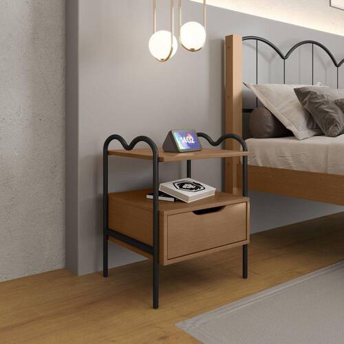 A Mesa Cabeceira Oasis foi desenvolvido para agregar na decoração do seu ambiente, fazendo que seu espaço fique ainda mais moderno e elegante. Nossa Mesa de Cabeceira contém 1 gaveta, pés em aço e um lindo design no estilo industrial, para que você possa organizar e guardar os seus objetos. Este móvel vai aprimorar ainda mais o seu ambiente. Acabamento da Gaveta: Pintura Acabamento da Prateleira: Pintura Acabamento dos Pés: Pintura Altura dos Pés: 9 cm Ambiente Principal: Quarto Complexidade da Montagem: Média: pode ser montado por mais de uma pessoa e/ou necessite de maior conhecimento para montagem Cor: Preto/Marrom Cor do Produto: Preto/Marrom Escala de Brilho: Semi-Fosco Escala de Brilho da Prateleira: Semi-Fosco Gaveta com Chave: Não Itens Inclusos: 1 Mesa de Cabeceira e manual de montagem Linha ou Coleção: Oasis Manual de Montagem e Instalação: https://product-hub-prd.madeiramadeira.com.br/885978/documents/acab929d-c7b6-4a3c-a638-44cda03280b1anualmontagemmesacabeceira.pdf Material da Gaveta: MDF Material da Prateleira: MDF Material dos Pés: Aço Material Principal: MDF Necessita Montagem: Sim Origem do Produto: Nacional Pés Reguláveis: Não Peso: 11,59 kg Peso Máximo por Gaveta: 5 kg Peso Máximo por Prateleira: 3 kg Pet Friendly: Não Possui Espelho: Não Possui Possui Nichos: Não Possui Pés: 04 Possui Portas: Não Possui Prateleiras: 01 Possui Vidro: Não Recomendações de Uso, Manutenção e Limpeza: Pano levemente umedecido com água, seguido de pano seco, não utilizar produtos químicos ou abrasivos. Sapatas Niveladoras: Não Sistema de Montagem: Parafusos e Ponteiras Suporta Até (kg): 10 kg Tipo de Corrediça da Gaveta: Metálica Telescópica Tipo de Puxador da Gaveta: Embutido