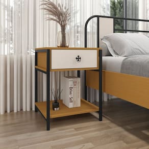 A Mesa de cabeceira Sevilha é um produto moderno e versátil, possui estrutura em aço que remete ao estilo industrial com traços retos e minimalista agregando aconchego e estilo aos mais variados ambientes. Possui 1 gaveta ampla para melhor acomodar seus pertences. Acabamento da Gaveta: Pintura UV Acabamento da Prateleira: Pintura UV Acabamento dos Pés: Pintura Altura dos Pés: 7 cm Ambiente Principal: Quarto codigo_ean: 7900288191274 Complexidade da Montagem: Média: pode ser montado por mais de uma pessoa e/ou necessite de maior conhecimento para montagem Cor: Preto/Marrom/Off White Cor do Produto: Preto/Marrom/Off White Escala de Brilho: Semi-Fosco Escala de Brilho da Gaveta: Semi-Fosco Escala de Brilho da Prateleira: Semi-Fosco Gaveta com Chave: Não Itens Inclusos: 1 Mesa de Cabeceira, Kit Ferragens e Manual de Montagem Linha ou Coleção: Sevilha Manual de Montagem e Instalação: https://product-hub-prd.madeiramadeira.com.br/832870691/documents/34652ea2-e016-434f-9911-017f127fee42ucaomesadecabeceirasevilha.pdf Marca: Art Panta Material da Gaveta: MDF/MDP Material da Prateleira: MDF/MDP Material do Puxador da Gaveta: Metal Material dos Pés: Aço Material Principal: Aço Montagem Flex: Não Necessita Montagem: Sim Origem do Produto: Nacional Pés Reguláveis: Não Peso: 10,185 kg Peso Máximo por Gaveta: 3 kg Peso Máximo por Prateleira: 5 kg Pet Friendly: Sim Possui Espelho: Não Possui Possui Nichos: Não Possui Pés: 04 Possui Portas: Não Possui Prateleiras: 01 Possui Vidro: Não Recomendações de Uso, Manutenção e Limpeza: Pano levemente umedecido com água, seguido de pano seco, não utilizar produtos químicos ou abrasivos. Sapatas Niveladoras: Não Sistema de Montagem: Parafusos Suporta Até (kg): 5 kg Tipo de Corrediça da Gaveta: Metálica Simples Tipo de Puxador da Gaveta: Externo