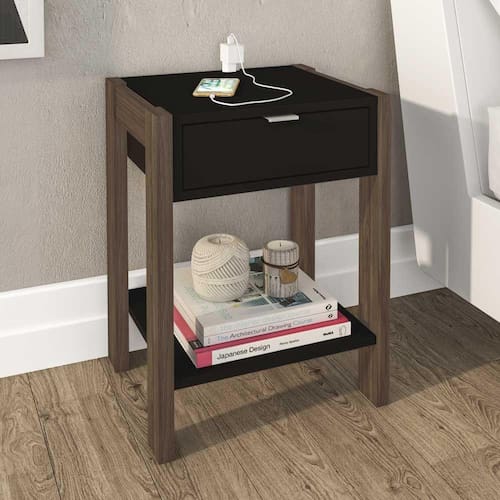 O (a) 1 GAVETA COM TOMADA AZ1016 PRETO / NOGAL - TECNO MOBILI é produzido em MDP.
