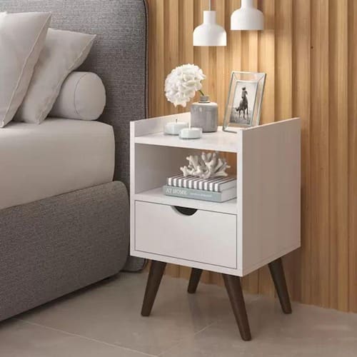 Alguns itens são indispensáveis na decoração de um quarto, por isso tenha em sua casa a Mesa de Cabeceira Alice Com Gavetas Usinadas que traz delicadeza, sofisticação e praticidade para o seu dia a dia. Produzida em MDF/MDP, conta com 1 gavetas com puxadores em novo designer, onde a sua produção é usinada, corrediças metálicas. Seu estilo retrô fica por conta dos seus pés palito que agregam requinte e bom gosto ao seu dormitório.