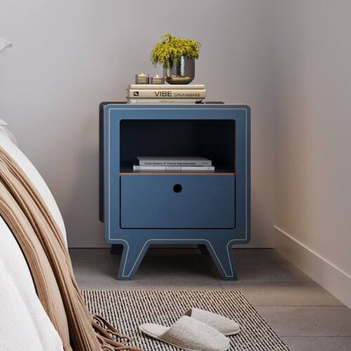 Indicada para ambientes internos. Acabamento da Gaveta: BP Acabamento da Prateleira: BP Acabamento dos Pés: BP Altura dos Pés: 8 cm Ambiente Principal: Quarto Complexidade da Montagem: Baixa: pode ser montado por uma pessoa sozinha Cor: Azul Cor do Produto: Azul Cor Flex: Não Cor Interna: Azul Escala de Brilho: Fosco Escala de Brilho da Gaveta: Fosco Escala de Brilho da Prateleira: Fosco Gaveta com Chave: Não Itens Inclusos: 1 Mesa de Cabeceira, Parafusos para montagem + 1 Chave Philips + 1 Manual de montagem Linha ou Coleção: Coleção Móveis para Casa Manual de Montagem e Instalação: https://product-hub-prd.madeiramadeira.com.br/966216/documents/9943e7ac-20a2-4c37-bd36-8225892b93592511111579517302073356974.pdf Marca: Ferpa Design Material da Gaveta: MDF Material da Prateleira: MDF Material dos Pés: MDF Material Principal: MDF Montagem Flex: Não Necessita Montagem: Sim Origem do Produto: Nacional Pés Reguláveis: Não Peso: 20,1 kg Peso Máximo por Gaveta: 5 kg Peso Máximo por Prateleira: 10 kg Pet Friendly: Não Possui Espelho: Não Possui Possui Nichos: 01 Possui Pés: 04 Possui Portas: Não Possui Prateleiras: 01 Possui Vidro: Não Quantidade de Nichos: 01 Recomendações de Uso, Manutenção e Limpeza: Limpar somente com um pano levemente umedecido. Indicado para ambientes internos. Sapatas Niveladoras: Não Sistema de Montagem: Montagem com Parafusos, tambores de fixação e cavilhas Suporta Até (kg): 40 kg Tipo de Corrediça da Gaveta: Metálica Telescópica Tipo de Puxador da Gaveta: Embutido