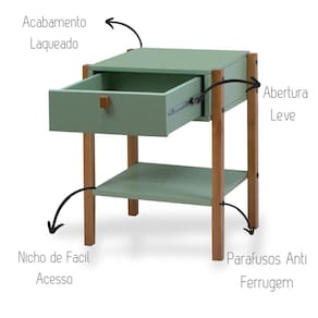 O acabamento de alto padrão realça os veios da madeira, conferindo um toque de elegância e sofisticação. A gaveta equipada com corrediças telescópicas oferece abertura suave e silenciosa, enquanto a prateleira inferior, que serve como nicho, é perfeita para organizar seus livros ou objetos decorativos.