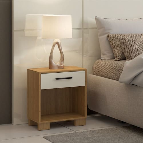 Mesa de Cabeceira 1 Gaveta Reta W343 Freijó Off White Dalla Costa - Freijó | Off White
