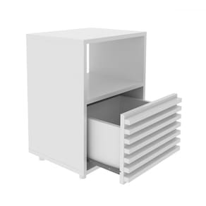 O(a) Mesa de Cabeceira 1 Gaveta Ripado Cm8042 Branco - Tecno Mobili é produzido em MDP na escala de brilho Semi-Brilho, e possui um grau de dificuldade de montagem: Médio.