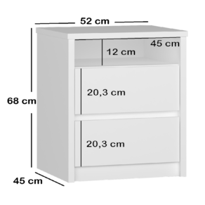 Peso : 25Kg Tire todas as suas Dúvidas, pois estamos a disposição para te atender. Acabamento da Gaveta: Pintura Texturizada UV Ambiente: Quarto Ambiente Principal: Quarto Complexidade da Montagem: Média: pode ser montado por mais de uma pessoa e/ou necessite de maior conhecimento para montagem Cor: Branco Cor do Produto: Branco Escala de Brilho: Fosco Escala de Brilho da Gaveta: Fosco Gaveta com Chave: Não Itens Inclusos: 1 Mesa de Cabeceira e 1 Manual de Montagem. Manual de Montagem e Instalação: https://product-hub-prd.madeiramadeira.com.br/472594/documents/55d38228-9d81-468e-91b7-3da25b4f2322a99291393807criado2gavetas.pdf Marca: Foscarini Material da Gaveta: MDF Material Principal: MDF Necessita Montagem: Sim Origem do Produto: Nacional Peso: 25 kg Peso Máximo por Gaveta: 8 kg Pet Friendly: Não Possui Espelho: Não Possui Possui Nichos: 01 Possui Pés: Não Possui Portas: Não Possui Prateleiras: Não Quantidade de Nichos: 01 Recomendações de Uso, Manutenção e Limpeza: Limpar com flanela ou pano macio seco, não utilizar produtos abrasivos, desengordurantes, álcool ou solvente. Não expor o produto diretamente à luz solar e à umidade. Sapatas Niveladoras: Não Sistema de Montagem: Parafusos, minifix e cavilhas. Suporta Até (kg): 30 kg Tipo de Corrediça da Gaveta: Metálica Telescópica Tipo de Puxador da Gaveta: Não Possui - Abertura por Fecho Toque