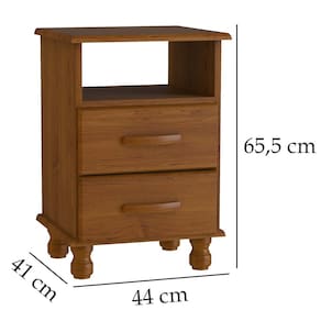 Características da Mesa de Cabeceira 2 Gavetas 100% Madeira de Pinus: