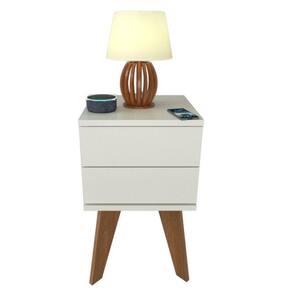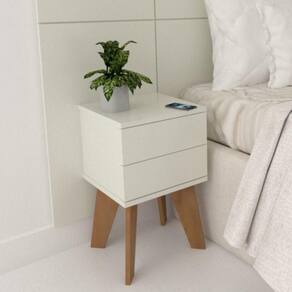 Mesa de Cabeceira 2 Gavetas 30 cm MDF Branco com Pés