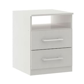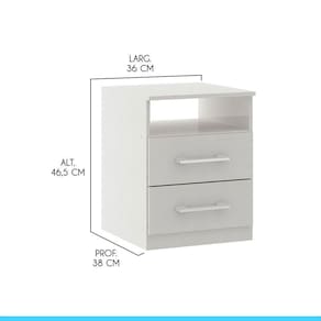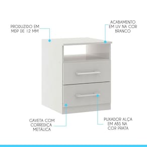 Mesa De Cabeceira 2 Gavetas 36x46cm Mdp Branco Menu Móveis Branco A Mesa de Cabeceira e um movel util e versatil que facilita a sua rotina diaria. Dispoe de um design atual que facilita na hora de montar a decoracao do seu ambiente. Dispoe de duas gavetas, nicho e tampo espacoso para manter tudo sempre organizado. A Mesa de Cabeceira e produzida com materiais de excelente qualidade, garantindo a durabilidade e vida util dos moveis. O melhor em moveis no design atual aliando conforto, qualidade e otimos precos, so na Menu Moveis! Caracteristicas: Referencia: 1040 Material: MDP de 12 mm Acabamento: Pintura UV na cor Branco Gavetas: 02 Gavetas com Corredicas Metalicas Puxador tipo Alca em ABS na cor Prata