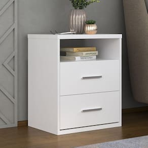 A Mesa de Cabeceira 2 Gavetas Foscarini é produzida 100% em MDF, com acabamento UV fosco/texturizado o que garante brilho e proteção em toda a superfície do móvel. Seu sistema de montagem é realizado através de parafusos, minifix e cavilhas. Sua estrutura principal é de 25mm e possui duas gavetas com corrediças telescópicas de deslize suave que proporcionam a abertura total. Medidas montado (A x L x P): 60 x 50 x 36 cm. Ideal para renovar seu quarto. Aproveite! Acabamento da Gaveta: Pintura Texturizada UV Ambiente Principal: Quarto Complexidade da Montagem: Baixa: pode ser montado por uma pessoa sozinha Cor: Branco Cor do Produto: Branco Cor Interna: Branco Escala de Brilho: Fosco Escala de Brilho da Gaveta: Fosco Gaveta com Chave: Não Itens Inclusos: 1 Mesa de Cabeceira, Kit Ferragens e Manual de Montagem Manual de Montagem e Instalação: https://product-hub-prd.madeiramadeira.com.br/767795/documents/9693df8a-b9d0-4a7e-b09e-4caff9a1bfc5807mesadecabeceira2gavetas.pdf Material da Gaveta: MDF Material do Puxador da Gaveta: Alumínio Material Principal: MDF Necessita Montagem: Sim Origem do Produto: Nacional Peso: 18 Peso Máximo por Gaveta: 15 Pet Friendly: Não Possui Espelho: Não Possui Possui Nichos: 01 Possui Pés: Não Possui Portas: Não Possui Prateleiras: Não Possui Vidro: Não Quantidade de Nichos: 01 Recomendações de Uso, Manutenção e Limpeza: Limpar com flanela ou pano macio seco, não utilizar produtos abrasivos, desengordurantes, álcool ou solvente. Não expor o produto diretamente à luz solar e à umidade. Sapatas Niveladoras: Não Sistema de Montagem: Parafusos, minifix e cavilhas. Suporta Até (kg): 45 Tipo de Corrediça da Gaveta: Metálica Telescópica Tipo de Puxador da Gaveta: Externo Ean: 7909903098103