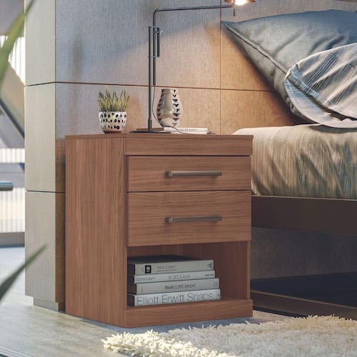 Características: 02 gavetas com corrediças metálicas Espaço para livros e revistas Puxadores em alumínio