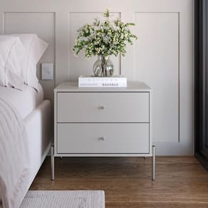 Mesa de Cabeceira 2 Gavetas Jasper 64 cm - Off White Fosco c/ Champanhe: