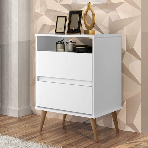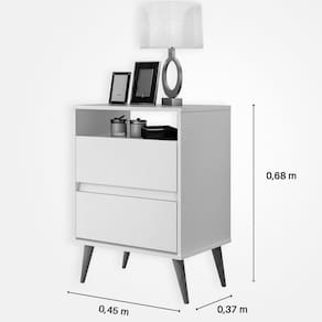 A Mesa de Cabeceira 2 Gavetas Lotus é ideal para compor a decoração do seu ambiente. Seu tamanho compacto se adapta a diversos tamanhos de espaço. Ideal para compor seu dormitório e até escritório possui espaço para objetos que precisam estar à mão, além de objetos decorativos e diversos outros itens. Funcional e lindo, seus pés palito garantem o charme e o requinte que você buscava. Acabamento: Pintura UV Acabamento da Gaveta: Pintura UV Altura: 68 cm Altura dos Pés: 8 cm calculo: unidade Complexidade da Montagem: Média: pode ser montado por mais de uma pessoa e/ou necessite de maior conhecimento para montagem Cr: Branco Cr do Produto: Branco Escala de Brilho: Brilhante Estilo: Contemporâneo Gaveta com Chave: Não Itens Inclusos: 1 Mesa de Cabeceira e Manual de Montagem Largura: 45 cm Manual de Montagem e Instalação: https://cdn2.madeiramadeira.com.br/atributo/j-a-moveis/616471-criado-lotus-2-gavetas.pdf Material da Gaveta: MDF/MDP Material dos Pés: Madeira Maciça Material Principal: MDP Necessita Montagem: Sim Origem do Produto: Nacional Peso: 11 kg Peso Máximo por Gaveta: 5 kg Possui Espelho: Não Possui Possui Gavetas: 02 Possui Pés: 04 Possui Portas: Não Possui Prateleiras: Não Possui Rodízio: Não Possui Vidro: Não Profundidade: 37 cm Recomendações de Uso, Manutenção e Limpeza: Limpar com pano seco, manter em lugar livre de umidade, ao abrigo de exposição direta ao sol. Sapatas Niveladoras: Não Sistema de Montagem: Parafusos,Cavilhas, Tampo, Pregos status-cadastro: Aprovado Suporta Até (kg): 15 kg Tamanho: Tipo de Corrediça da Gaveta: Metálica Simples Tipo de Madeira Maciça dos Pés: Pinus Tipo de Puxador da Gaveta: Não Possui - Abertura por Fecho Toque
