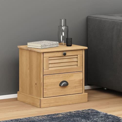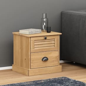 Com uma gaveta superior perfeita para guardar objetos menores, como óculos, carregadores ou acessórios, e uma gaveta inferior mais ampla para livros, documentos ou itens pessoais, mantém tudo organizado e ao alcance das mãos. Os puxadores metálicos em tom preto fosco dão um toque retrô sofisticado.