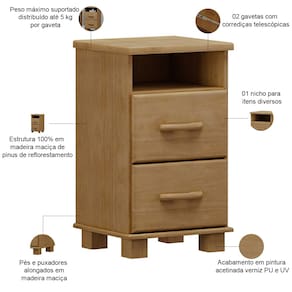 Fabricada em 100% madeira maciça, essa mesa lateral para quarto transcende a função básica de apoio, transformando-se em um objeto de desejo que alia máxima funcionalidade a um design meticuloso. Com 2 gavetas de deslize suave e 1 nicho estratégico, ela oferece organização diferenciada para seus objetos pessoais, desde resistência extraordinária que desafia o tempo ao design que transforma o utilitário em arte. Seja para compor o quarto de casal, solteiro ou quarto de hóspedes, essa mesa de apoio para cama é perfeita.